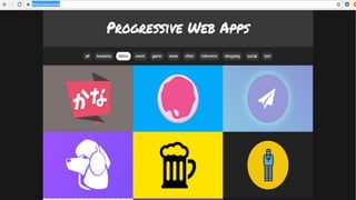 The document discusses the evolution of Progressive Web Apps (PWAs) and their features, emphasizing their ability to combine web and mobile app functionalities. It highlights the importance of service workers for offline support, caching, and features like push notifications, while addressing challenges such as browser support and user engagement. The document also offers resources and contact information for further exploration of PWAs and upcoming masterclasses.