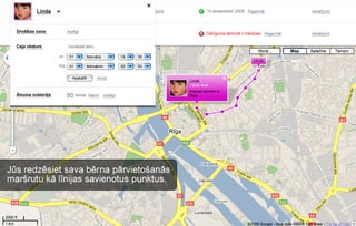 - Piespiediet bultiņu blakus bērna fotogrāfijai; - atvērsies pakalpojumu panelis, kura sadaļā „Ceļa vēsture” piespiediet „Skatīt atskaiti”; - kalendārā izvēlieties interesējošos datumus; - apstipriniet pieprasījumu; - jūs redzēsit sava bērna pārvietošanās maršrutu kā līnijas savienotus punktus.