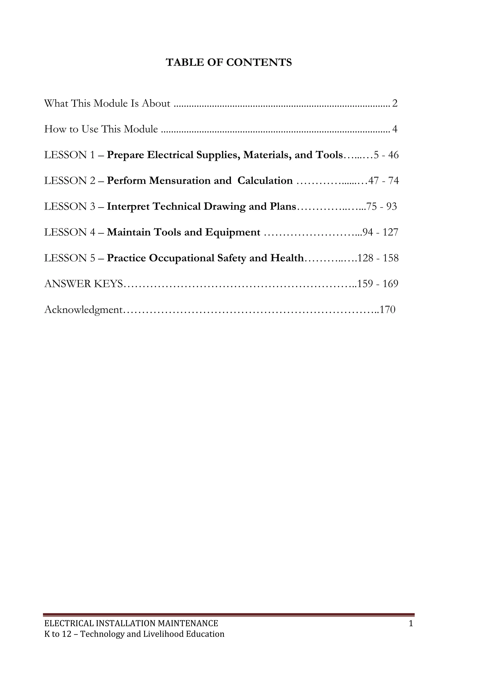 - Electrical materials include convenience outlets, male plugs, lamp holders (flush, hanging, surface), switches (hanging, flush, surface)