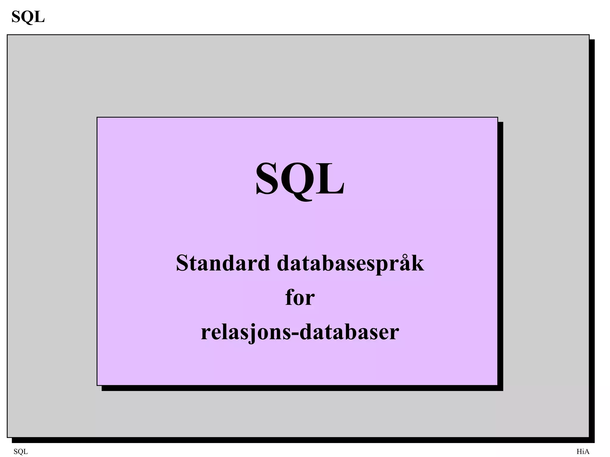 • SQL er i dag standard database-språk for relasjons-databaser.