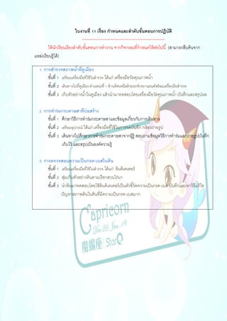 งานที่ 11 กำหนดและลำดับขั้นตอนการปฏิบัติ