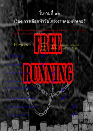 ใบงานที่ 13 เรื่อง การเลือกหัวข้อโครงงานคอมพิวเตอร์