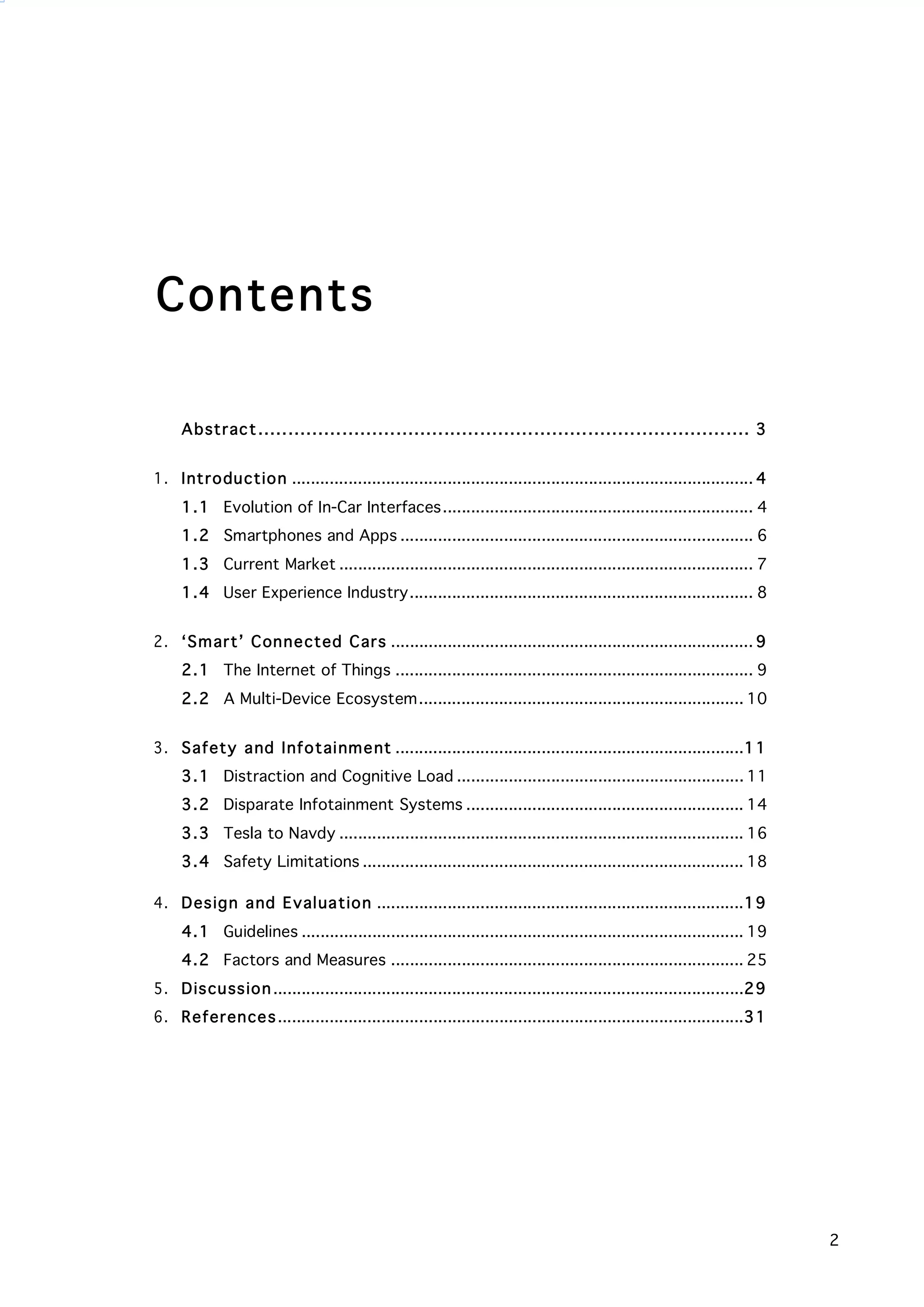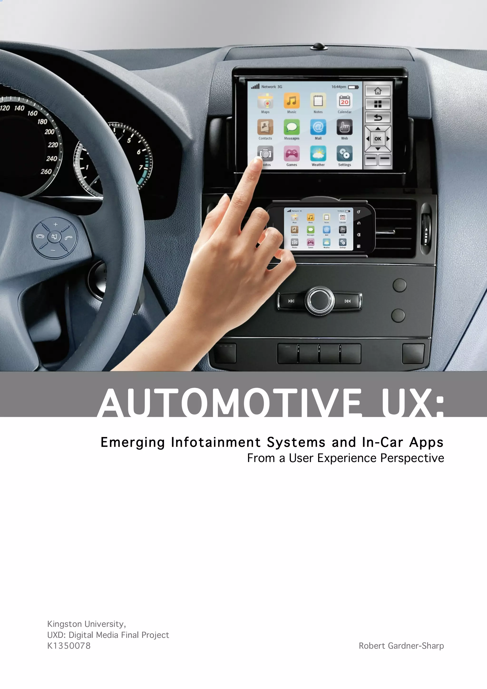 This document explores the evolution and current trends in in-car infotainment systems and apps from a user experience perspective, highlighting the integration of smartphones and the rise of 'smart' connected cars. It discusses the market dynamics, safety concerns related to cognitive load due to distractions while driving, and the necessity for tailored, optimized app experiences for drivers. Furthermore, it emphasizes the importance of user experience industry collaboration to navigate the complexities and challenges posed by this rapidly evolving technology.