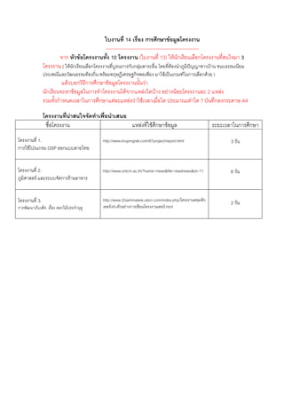 ใบงานที่ 14 เรื่อง การศึกษาข้อมูลโครงงาน