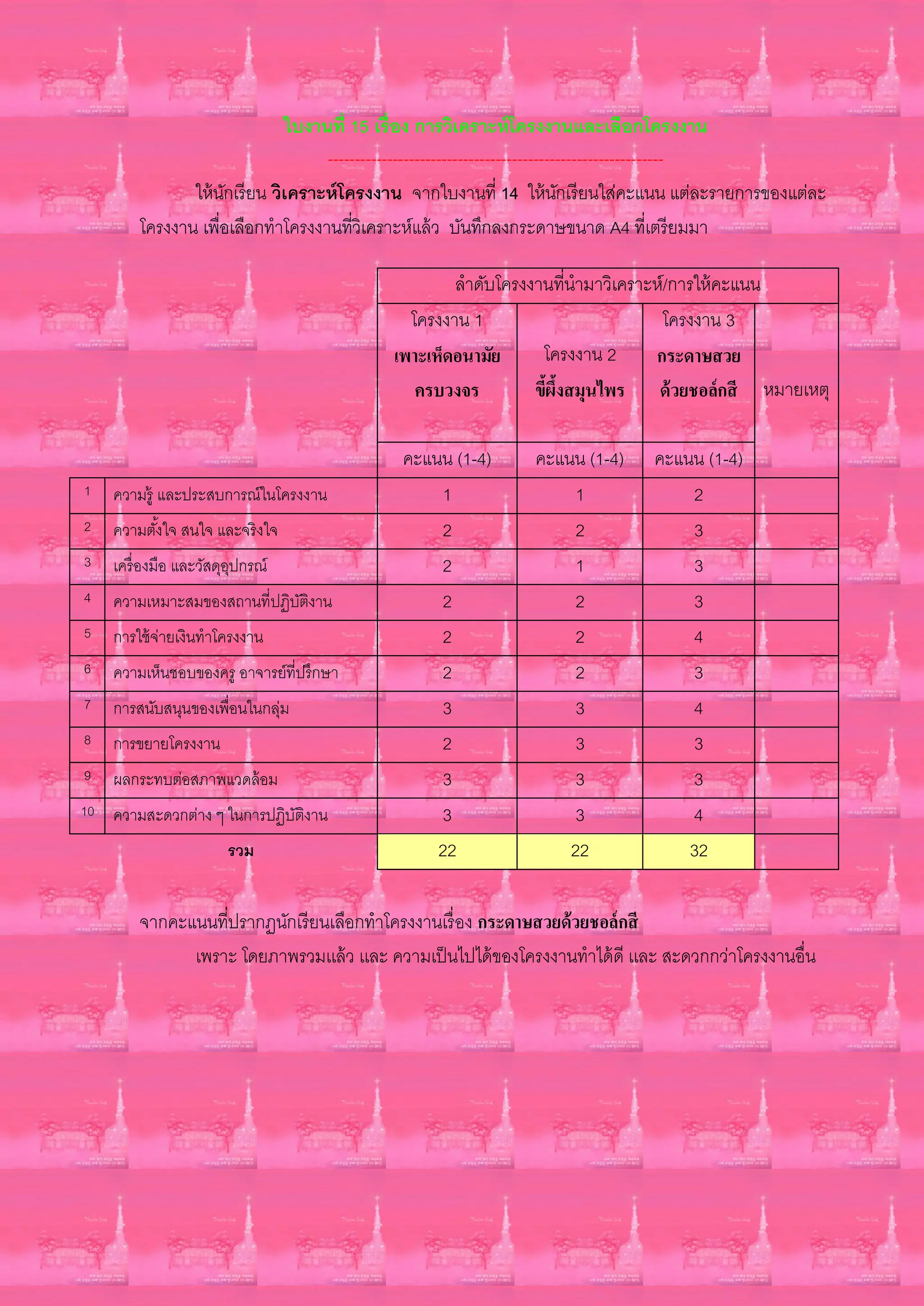 ใบงานที่ 15 เรื่อง การวิเคราะห์โครงงานและเลือกโครงงาน
