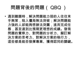 詹翔霖副教授探讨了问题解决能力的重要性,包括发现问题、分析、制定方案和执行等关键能力。他举了鸚鵡和酋长的故事,引导读者反思如何深入理解问题的本质。文中还强调了知识管理和思维能力对解决问题的影响,并提供了多种分析和决策的方法。