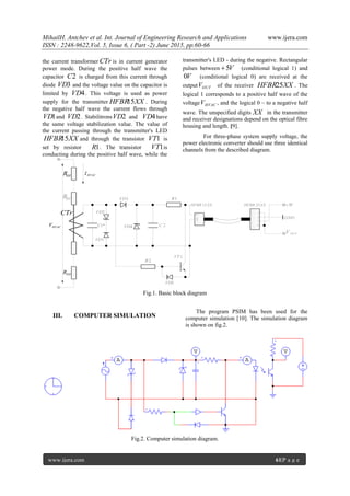 The document presents a new synchronizing device for power electronic converters that replaces traditional voltage synchronizing transformers with current transformers to improve accuracy and reduce size at high voltage levels. The proposed system utilizes optical media for galvanic isolation and can operate under significant voltage distortions, achieving synchronization in less than 100 ms according to both simulation and experimental results. Overall, the device enhances performance and reliability in various power applications, specifically for thyristor-controlled rectifiers.