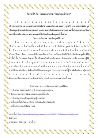 1. โปรแกรม สารบรรณสาเร็จรูป : Readymade Archivis