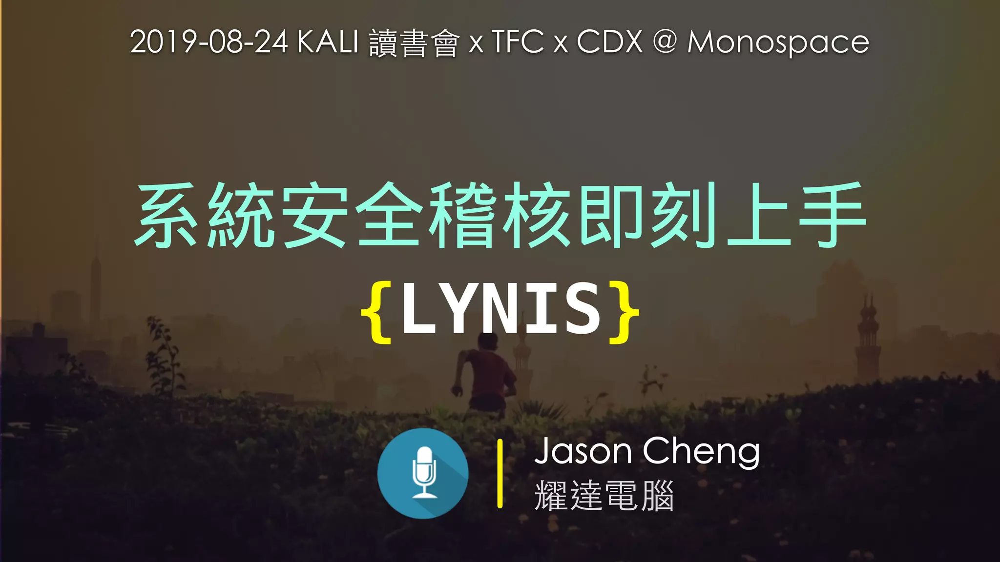 Jason Cheng 耀達電腦 系統安全稽核即刻上手 {LYNIS} 2019-08-24 KALI