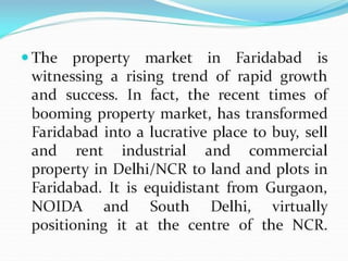 Kabul Chawla added saying, Faridabad is an important part of Delhi NCR which comprises Gurgaon, Noida, Ghaziabad and Greater Noida. The real estate sector in and around Delhi has witnessed a surge in the last five years owing to the IT wave in the country. Faridabad, too, is experiencing considerable growth in the real estate segment and developing exponentially. It has become one of the most sought after realty destinations in the NCR.