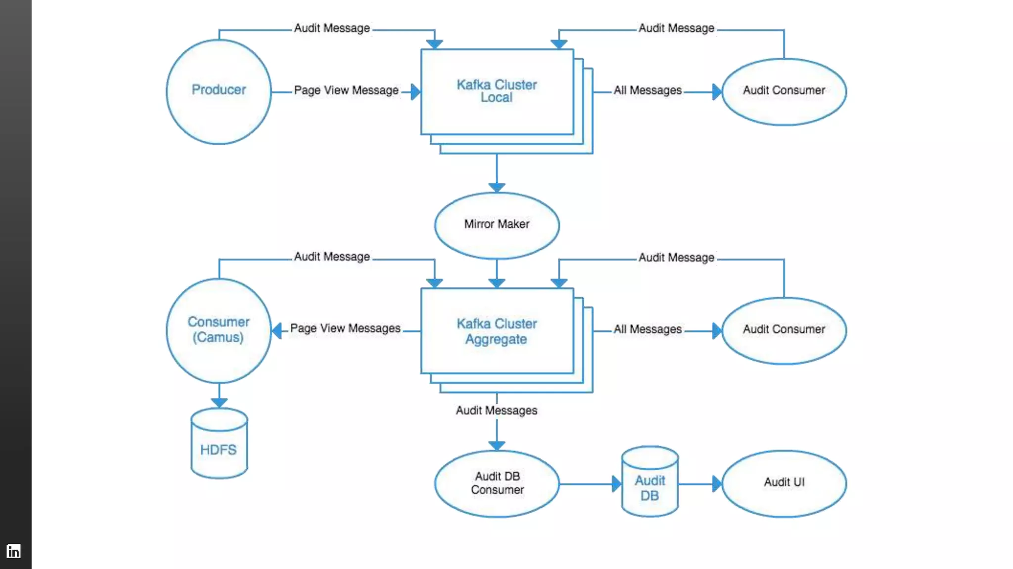 Kafka is a high-throughput distributed messaging system developed by LinkedIn, designed to handle real-time data feeds and stream processing with features like low latency and fault tolerance. It supports extensive messaging needs for over 1,000 companies, including major firms like Netflix and Uber, and processes over 1.3 trillion messages daily, showcasing its scalability and performance. At LinkedIn, Kafka is utilized for various applications, such as monitoring, user tracking, and notification systems, while operating on a robust infrastructure with specific hardware configurations.