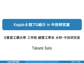 工学院 経営工学系 水野・中田研究室 Takami Sato 2017/11/22Kaggle&競プロ紹介 1