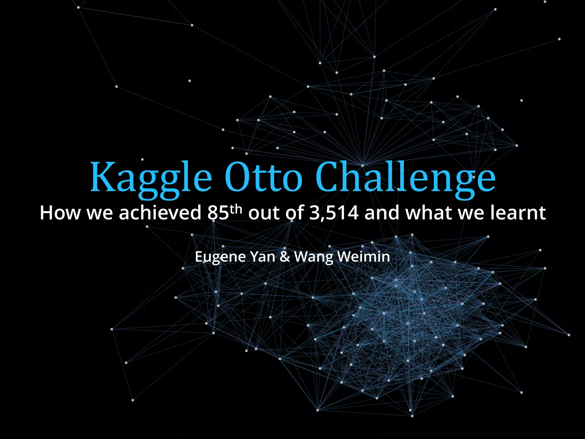 The document outlines how the authors achieved the 85th position out of 3,514 teams in the Kaggle Otto product classification challenge, focused on minimizing multi-class log loss through various modeling techniques. They discuss data feature engineering, model validation methods, and the performance of different algorithms, including tree-based models and neural networks, while emphasizing the importance of ensemble methods. The authors also provide insights into strategies for Kaggle competitions, including effective validation processes and feature transformation techniques.