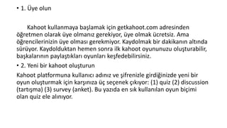 başlayabilirsiniz. (getkahoot.com sitesinde başka sayfaları gezerken