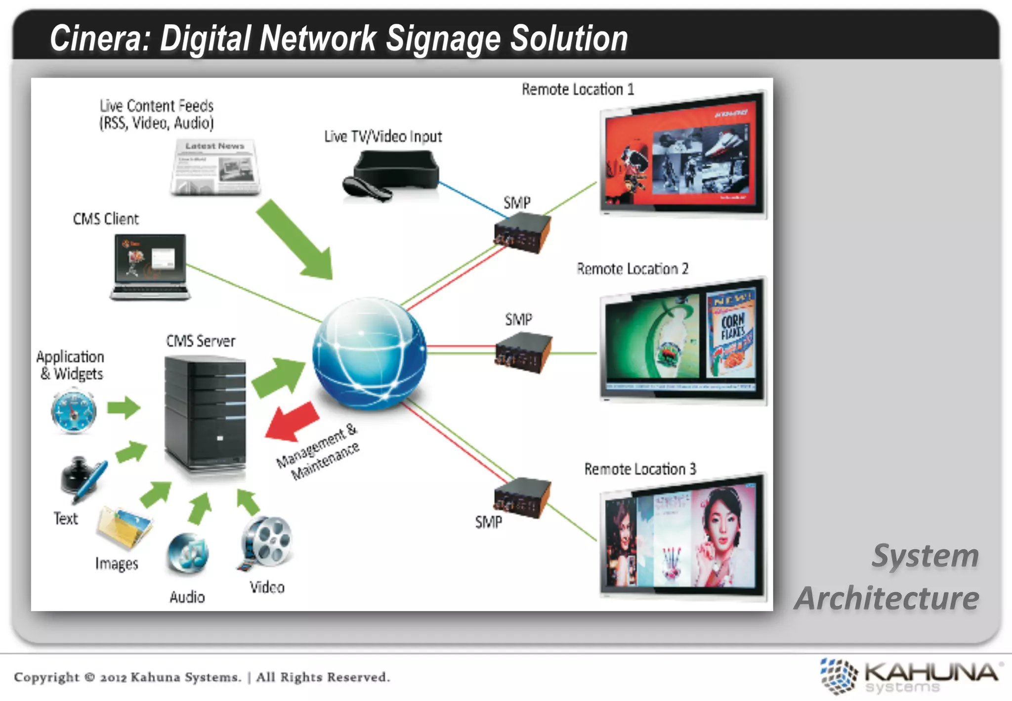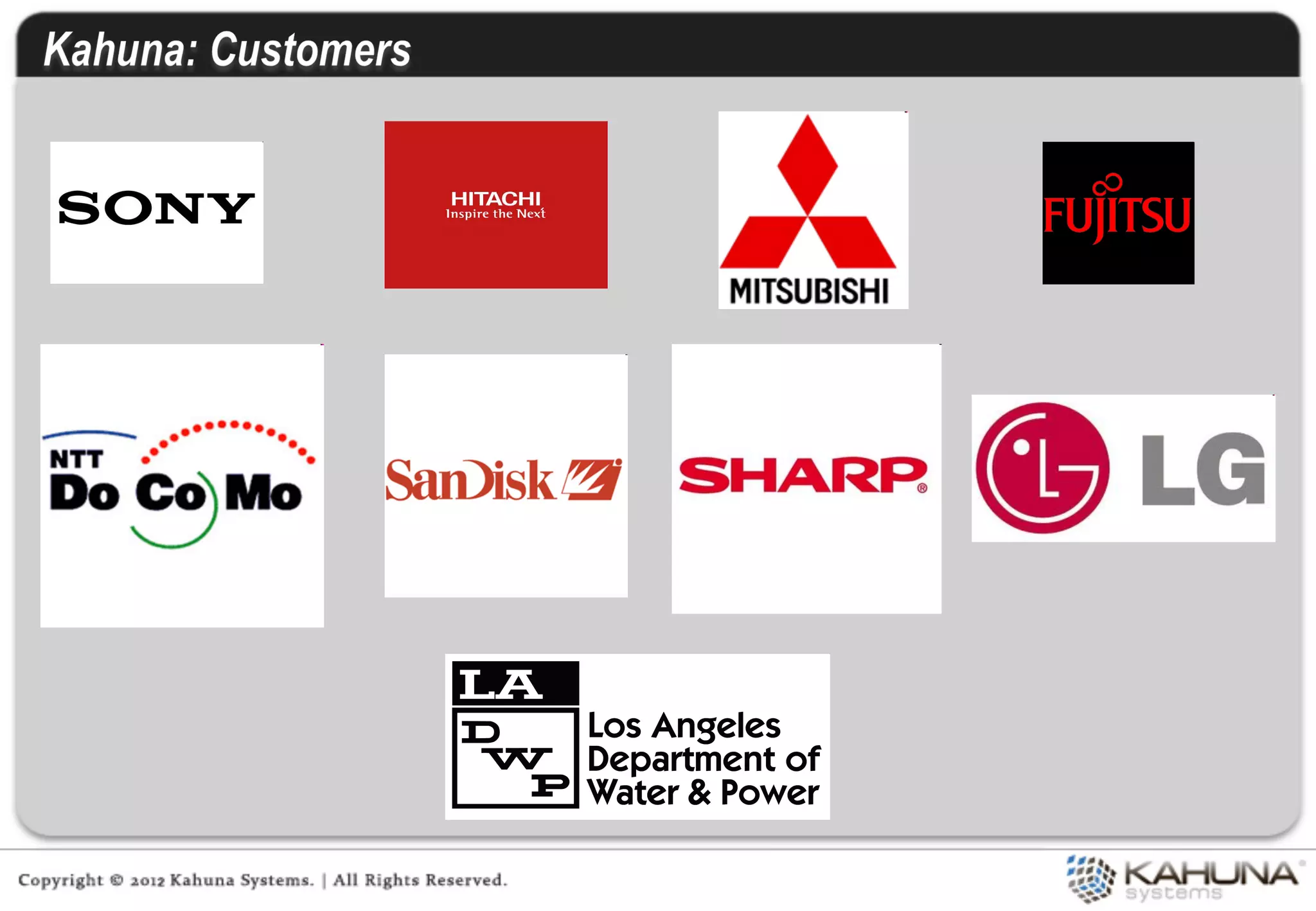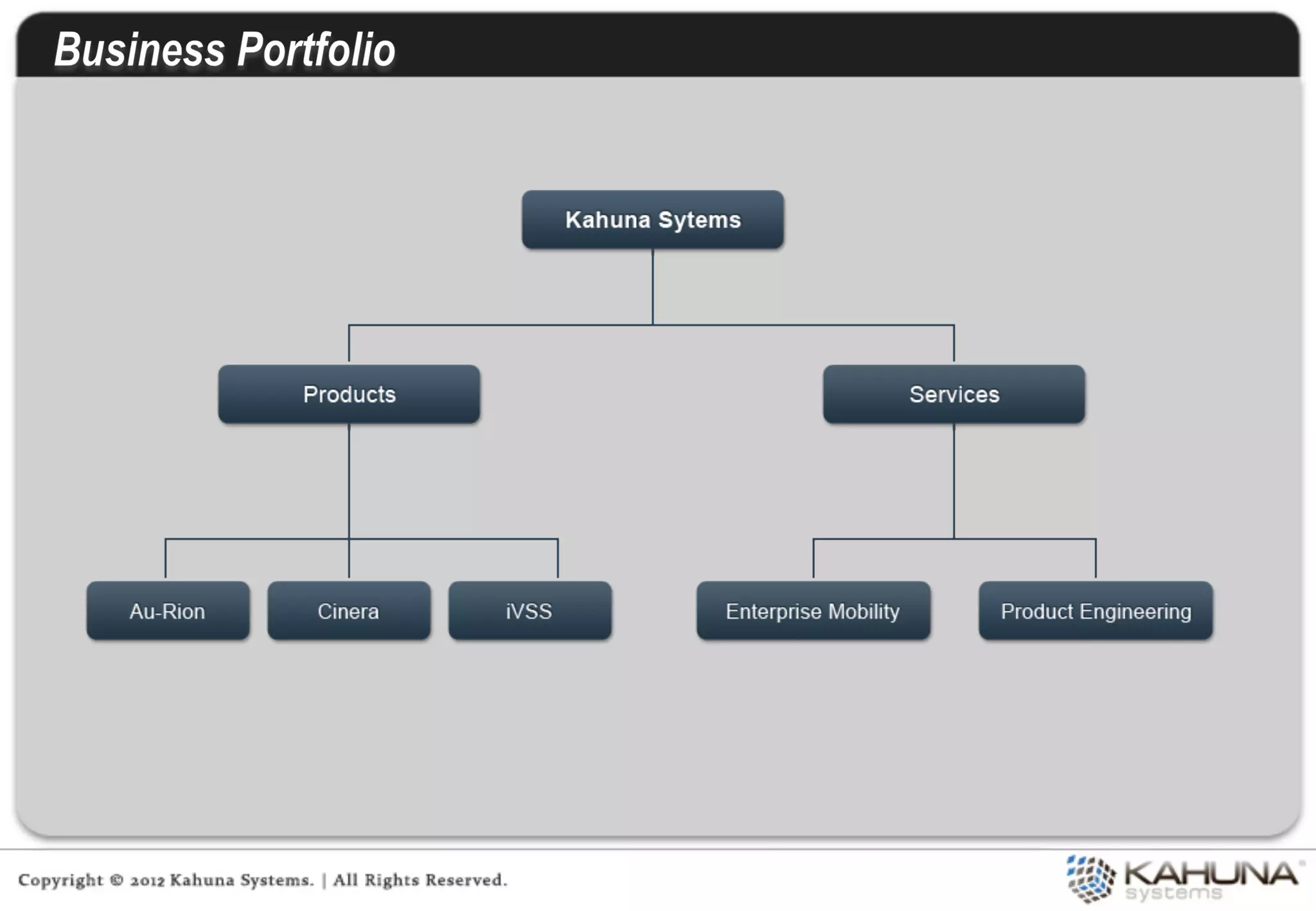Kahuna provides embedded software and integrated product engineering services. It focuses on areas like ubiquitous computing, embedded software, and product engineering. Kahuna has experience developing solutions for industries like industrial automation, smart grids, multimedia, automotive, consumer electronics, and mobile computing. It utilizes in-house technology frameworks and follows a product-centric services approach to provide value at each stage of product development.