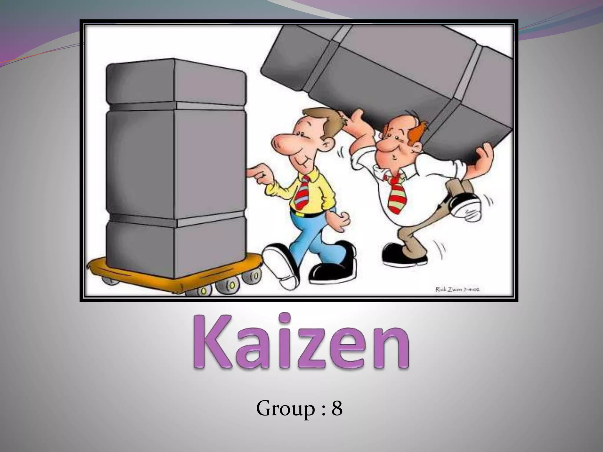 Kaizen is a Japanese philosophy that focuses on continuous improvement involving all employees. It has five key elements: teamwork, increased efficiency, improved employee morale and satisfaction, improved safety, and the five S framework of seiri, seiton, seiso, seiketsu, and shitsuke. Kaizen is implemented through training, project selection, team selection, process mapping, and continuous improvement. It is applicable for all levels of an organization from top management to workers. Toyota is an example of a company that successfully uses kaizen to achieve high production efficiency.