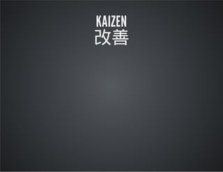 The document outlines various strategies for implementing kaizen, including visualization of progress, task management, and establishing positive habits. It emphasizes the importance of making incremental changes, maintaining organization through tools like kanban boards, and automating or outsourcing repetitive tasks. The overall message is to embrace change immediately, as small improvements can lead to significant results.