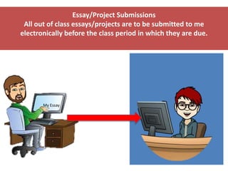 1) All essays and projects must be submitted electronically through Kaizena before the class period they are due.