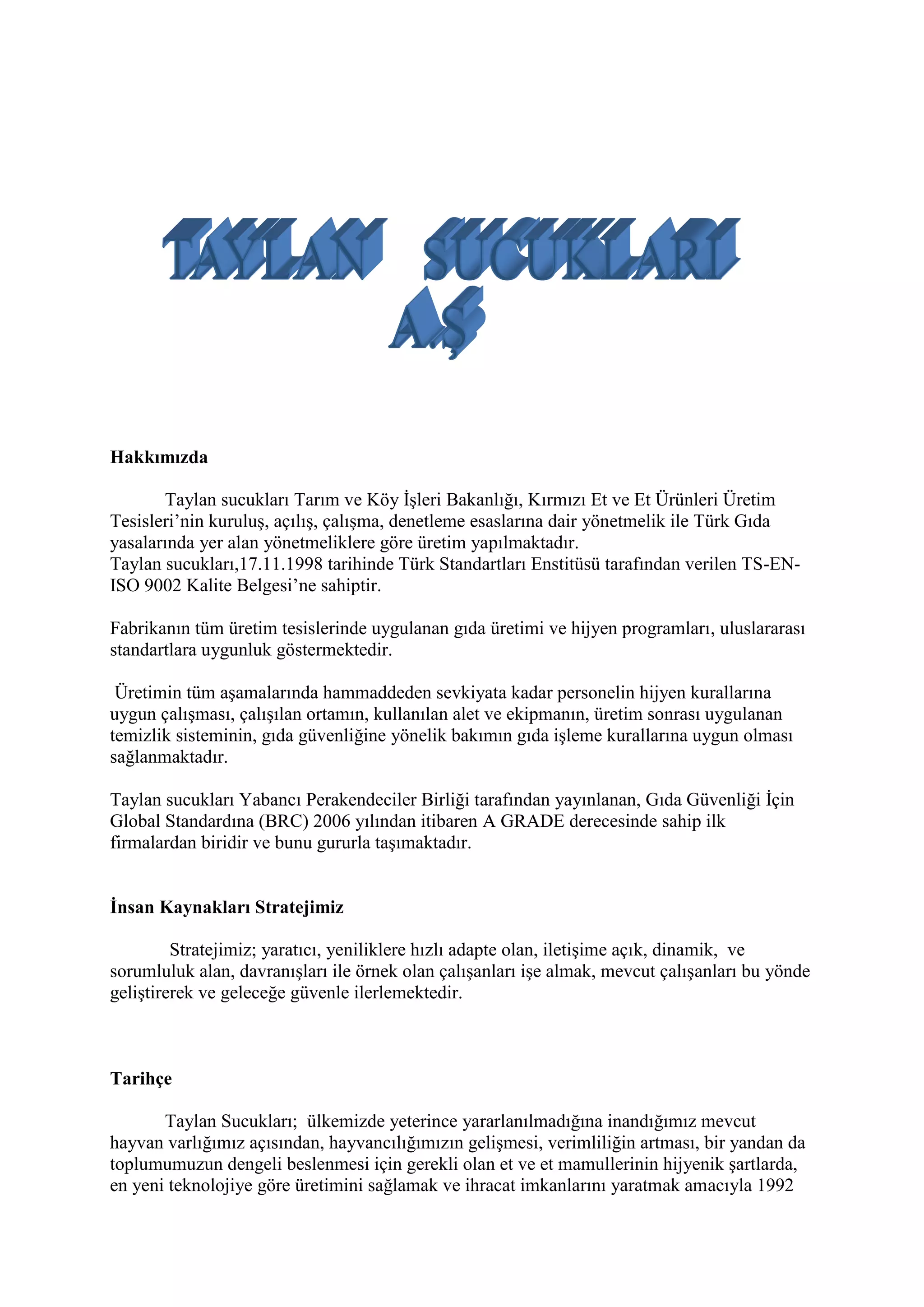 <br />Hakkımızda<br />Taylan sucukları Tarım ve Köy İşleri Bakanlığı, Kırmızı Et ve Et Ürünleri Üretim Tesisleri’nin kuruluş, açılış, çalışma, denetleme esaslarına dair yönetmelik ile Türk Gıda yasalarında yer alan yönetmeliklere göre üretim yapılmaktadır.Taylan sucukları,17.11.1998 tarihinde Türk Standartları Enstitüsü tarafından verilen TS-EN-ISO 9002 Kalite Belgesi’ne sahiptir.Fabrikanın tüm üretim tesislerinde uygulanan gıda üretimi ve hijyen programları, uluslararası standartlara uygunluk göstermektedir. Üretimin tüm aşamalarında hammaddeden sevkiyata kadar personelin hijyen kurallarına uygun çalışması, çalışılan ortamın, kullanılan alet ve ekipmanın, üretim sonrası uygulanan temizlik sisteminin, gıda güvenliğine yönelik bakımın gıda işleme kurallarına uygun olması sağlanmaktadır. Taylan sucukları Yabancı Perakendeciler Birliği tarafından yayınlanan, Gıda Güvenliği İçin Global Standardına (BRC) 2006 yılından itibaren A GRADE derecesinde sahip ilk firmalardan biridir ve bunu gururla taşımaktadır.<br />İnsan Kaynakları Stratejimiz<br /> Stratejimiz; yaratıcı, yeniliklere hızlı adapte olan, iletişime açık, dinamik, ve sorumluluk alan, davranışları ile örnek olan çalışanları işe almak, mevcut çalışanları bu yönde geliştirerek ve geleceğe güvenle ilerlemektedir.<br /> <br />Tarihçe<br />Taylan Sucukları; ülkemizde yeterince yararlanılmadığına inandığımız mevcut hayvan varlığımız açısından, hayvancılığımızın gelişmesi, verimliliğin artması, bir yandan da toplumumuzun dengeli beslenmesi için gerekli olan et ve et mamullerinin hijyenik şartlarda, en yeni teknolojiye göre üretimini sağlamak ve ihracat imkanlarını yaratmak amacıyla 1992 yılının Ocak ayında temel atma töreni yapılmıştır.Fizibilite çalışmaları, proje ekibiyle yürütülmüş, yerli ve yabancı uzmanlarla yapılan uzun ve detaylı çalışmalar neticesinde projenin ana hatları ortaya çıkmıştır.1992 yılının Ocak ayında TAYLAN SUCUKLARI A.Ş. . Muş’un Bulanık ilçesinin Okçular köyünde 200 dönümlük bir arazi satın alınarak bu büyük ve entegre tesisin inşaat faaliyetleri başlatılmıştır.Hayvandan maksimum faydalanmayı sağlayacak TAYLAN SUCUKLARI A.Ş. tesisleri, 1995 yılının Mart ayında 60 milyar liralık bir yatırımla tamamlanmıştır.Tam kapasitede yaklaşık 170 personelin istihdam edeceği TAYLAN SUCUKLARI A.Ş üretimine devam etmektedir. t<br />Ürünlerimiz<br />Sucuk <br />Salam<br />Jambon <br />Pastırma<br />Sosis<br />Köfte <br />Hamburger<br />Bize Ulaşın <br />Dilek ve şikayetleriniz için<br />Tüketici Danışma Hattı :0800 566 23 45<br />Genel Müdürlük <br />Adres:<br />Taylan Sucukları A.Ş <br />Okçular Köyü Bulanık/ MUŞ<br />Örnek <br />TAYLAN SUCUKLARI AŞ. Hayvancılık Üretim tesislerinde bulunan koyun sürüsünde bir mevsimde doğan kuzular mevsimin 1. 2. 3. Aylarında doğmaktadırlar. Aylara göre doğduklarında kaç kilo oldukları ve kilolarına bağlı olarak sağlıklı olup olmadıkları araştırılmaktadır. Doğan kuzuları 1.grup 2.grup ve 3.grup olarak ayırıp kiloları tartılmaktadır ve kiloları karşılaştırılmaktadır. Sonuçlara bağlı olarak normal kilonun altında kalan kuzuların da doğduklarında sağlıklı olması için yapılması gerekenleri sırlayınız.<br />1Ay Canlı Ağırlık2.Ay Canlı Ağırlık3.Ay Canlı Ağırlık 12,811,012,611,512,016,119,119,620,018,011,516,619,019,816,617,018,616,919,318,017,815,816,913,918,015,012,911,511,010,914,913,414,512,719,018,217,318,513,417,215,512,517,716,913,915,014,616,919,019,9<br />Canlı Ağırlık (kg) X Bar-R ve X Bar-S ŞemalarıCanlı Ağırlık (kg) X Bar-R ve X Bar-S Grafikleri için Test Sonuçları Bir noktadan merkezi hattı 'den fazla 3,00 standart sapmaları.Test noktalarında: 1, 2, 6 noktalarında sınırları aşmıştır, 1 ve 6 noktalarındaki kuzuların kiloları normal kilodan daha düşüktür, bu sorunun özel sebepleri olabilir, örneğin doğum yapacak koyunlar daha beslenerek sorun çözülebilir. 2 noktasındaki kuzularda ise daha kilolu oldukları görülmektedir, bu noktadaki koyunlara daha düzenli beslenerek sorun giderilebilir.<br />I-MR-R / Canlı Ağırlık (kg) standart sapmalar SStandart sapmalar2,12522 arasında2,02925 içinde/ içinde 2,93844 arasındaUYARI : Eğer yeni veriler ile güncellenir, yukarıdaki sonuç yok olabilir <br />Ayrıca yalnızca X Bar grafiğine bakacak olursak 1,2 ve 6 noktaları kontrol sınırları dışında bulundukları görülmektedir, bunla birlikte çok bariz zikzaklar çizmiştir yani doğan kuzuların kiloları arasında bariz farklar vardır bu iyi bir durum olmamakla birlikte koyunları sağlıklı beslemedikleri sonucunu çıkarılmaktadır. Bunun altında yatan özel sebepler belirlenmeli ve sorunun çözülmesi gerekiyor.<br />Genel olarak bakıldığında R grafikleri kontrol altında fakat bu grafiklerde de ortamlalar 2-5 noktaları arasında zikzaklar çizmiştir bunun özel sebepleri olabilir, bunun nedenleri araştırılıp bulunduktan sonra düzeltilmesi gerekiyor.<br />Pareto analizinden de faydalanarak şu yorum çok rahat yapılabilmektedir, 16-16,9 kilo arası kuzuların çoğunlukta olduğu ve bunların ortalama etkileri çok oldukları görülmektedir. Bunun düzeltilmesi için çalışılmalıdır.<br />Yukarıdaki histogram grafiklerinden de kuzuların kilolarının sayılarına bağlı olarak karşılaştırılması yapılmıştır.<br />