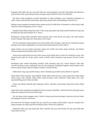 Kumpulan kata-kata mutiara ini berisi 123 kata-kata mutiara motivasi hidup yang diambil dari berbagai sumber untuk memberikan inspirasi kepada pembaca agar bangkit dan semangat menghadapi berbagai tantangan dalam kehidupan.