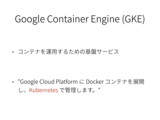 GKE を切り口にした Docker, Kubernetes の概要説明。 Kanazawa.rb x Hokuriku.NET x JAWS-UG北陸 (kanazawa.rb meetup 34) 発表資料。