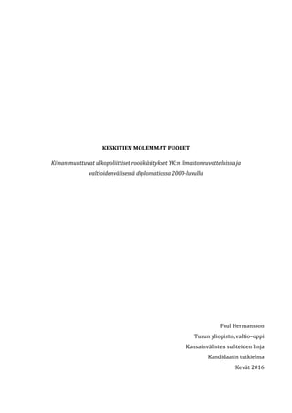 omaava avaintekijä erityisesti ilmastoneuvotteluissa (Yu, Hongyuan 2008, 5–6). Pariisin
