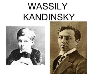 Wassily Kandinsky was born in Russia in 1866. He studied law and economics but also took drawing and painting classes. He was inspired by the works of famous painters Rembrandt and Monet. At age 30, he decided to pursue a career in painting and moved to Munich to study art, abandoning his original career path. In Munich, he met Paul Klee and they became close friends. Early in his career, Kandinsky showed interest in color through works like Squares with Concentric Circles, Various Circles, Composition VIII, Yellow, Red and Blue, Blue Sky, Color Studies, and Gravitation that moved toward abstraction.