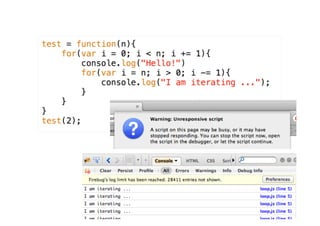 The document discusses whether JavaScript can be elegant. It notes that new JavaScript frameworks aim to simplify complex browser-side programming. It also includes quotes from different people discussing how enterprises view JavaScript developers and whether JavaScript needs to be replaced.