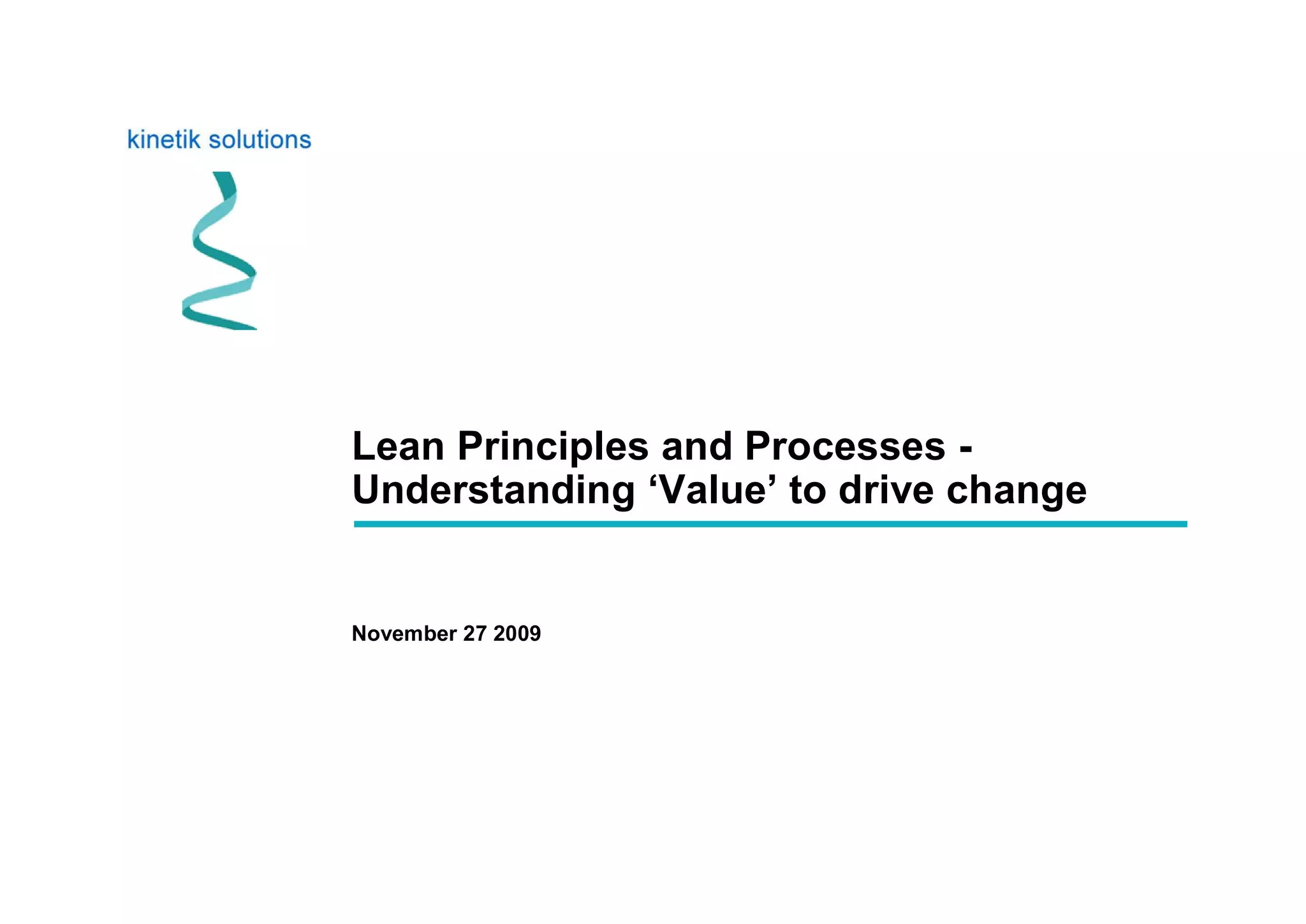 The document discusses lean principles and processes, with a focus on understanding value from the customer's perspective. It emphasizes removing waste, taking a bottom-up approach to identify value and waste, and allowing processes to flow with little command and control. The document also examines how to properly define and measure patient value in healthcare to improve patient experience and outcomes. It argues that current patient satisfaction measures are inadequate and that value should be explored from multiple stakeholder perspectives to guide sustainable service improvements.