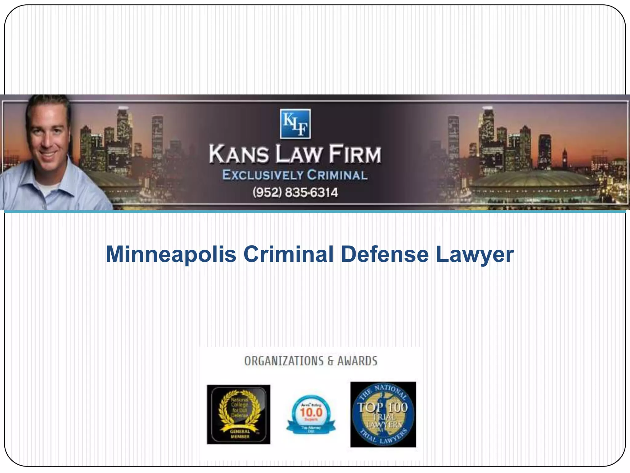 This document provides information about Minneapolis criminal defense lawyer Douglas Kans. It outlines his background as a former prosecutor with experience in criminal defense law, his law degree from William Mitchell College of Law, and recognition as a top lawyer. The document also lists his practice areas, which include assault, domestic violence, drug crimes, DUI/DWI, probation violations, sex crimes, and white collar crimes. Contact information is provided for the Kans Law Firm in Bloomington, Minnesota.