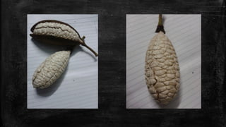Kapok fibers are naturally buoyant and resilient fibers that come from the kapok tree native to tropical America. The document discusses the structure and properties of kapok fibers, including that they are smooth, moisture resistant, and return to their original length when tension is removed. It then describes the traditional harvesting and processing methods to extract the fibers from kapok pods, and details tests run to identify properties like fiber length, burning characteristics, color, and surface texture. Finally, it lists traditional and potential new end uses of kapok fibers, such as in life jackets, pillows, clothing insulation, and blended textile yarns.
