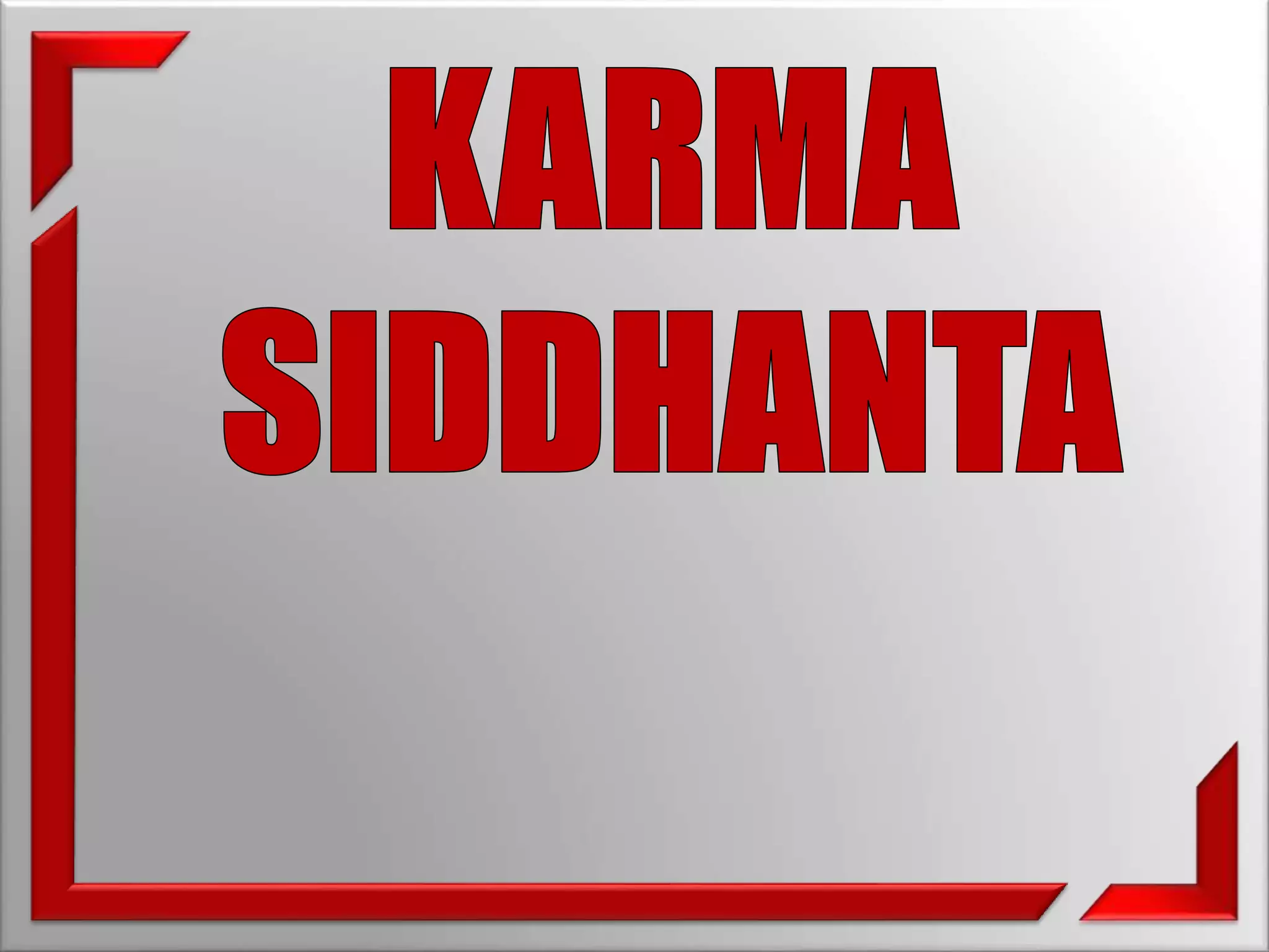 The document discusses the concept of "Karma Siddhanta", which means the law of karma. It states that one's thoughts become words, words become actions, actions become habits, and habits shape one's character and destiny. Karma Siddhanta seeks to explain why people are born into different conditions, whether poor, rich, healthy or unhealthy families, based on their past good and bad karmas. It distinguishes between sanchita karmas (fruits of past births), prarabdha karmas (rewards or sufferings), and agami and kriyatmana karmas (current karmas). While Karma Siddhanta says you reap what you sow,