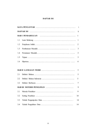 Dokumen tersebut merangkum hasil penelitian tentang pengaruh lingkungan sosial terhadap penggunaan bahasa campuran di kalangan pelajar SMA di Palembang. Penelitian ini mengkaji pengetahuan dan pendapat siswa mengenai penggunaan bahasa Indonesia dan bahasa campuran dalam percakapan sehari-hari.