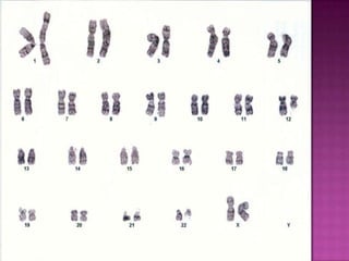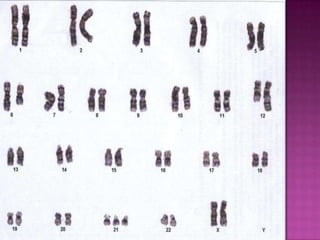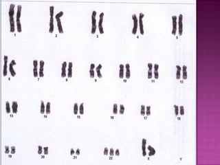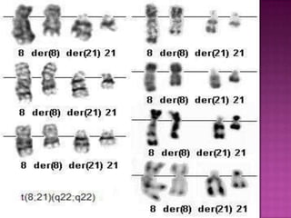 The karyotype shows a deletion of the long arm of chromosome 5 and an extra copy of chromosome 9. Deletions and extra copies of chromosomes are common abnormalities in chronic lymphocytic leukemia (CLL) that help determine prognosis. Deletion of the long arm of chromosome 5 is seen in a subset of CLL patients and is associated with poor prognosis.