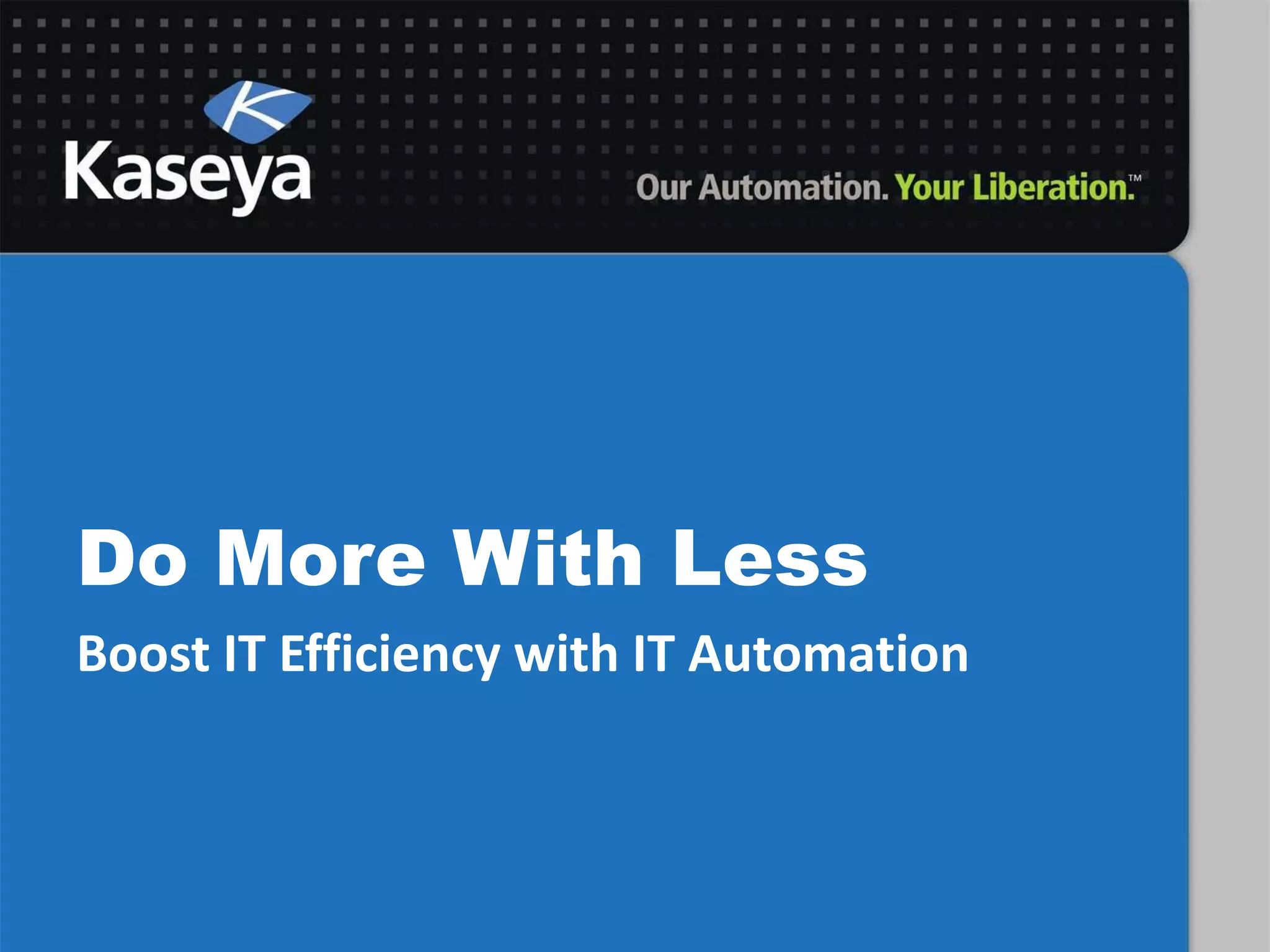 The document discusses IT automation and how Kaseya can help organizations achieve different stages of automation to boost efficiency. It describes how Kaseya can help organizations move from reactive break-fix approaches to more proactive, preventative approaches through centralized management, automated monitoring and scripting, and continuous process improvement techniques like kaizen. The final stage of automation discussed is "stage 4 automation" where issues can be stopped before occurring through self-healing systems and standard processes.