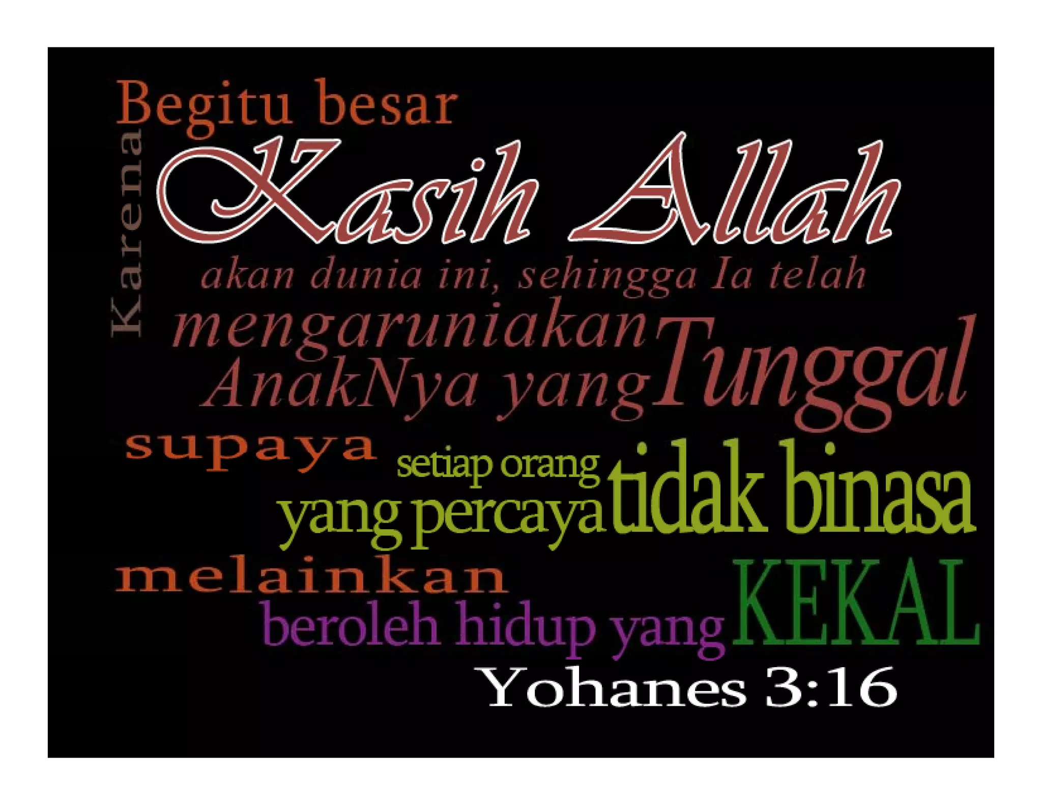 Dokumen ini menjelaskan tentang kasih Allah yang besar dan tidak terukur, yang dinyatakan melalui pengorbanan-Nya dengan mengaruniakan anak tunggal-Nya untuk keselamatan umat manusia. Penulis membahas perbandingan antara cara pandang manusia dalam memilih pasangan hidup dengan cara Allah yang melampaui batasan-batasan manusiawi. Terdapat juga penekanan pada tanggung jawab manusia untuk menghargai kehidupan dan tidak memandang orang lain berdasarkan keuntungan material semata.