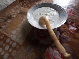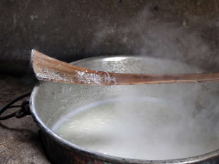 Δοκιμάζοντας δρύλλα, σιτάκα και αλευρά με κεράτινο κουτάλι ...