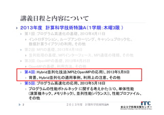 CMSI計算科学技術特論A(4) Hybrid並列化技法 1. 2. 講義日程と内容について