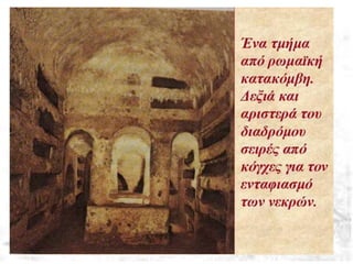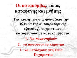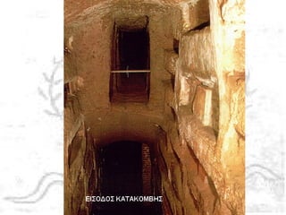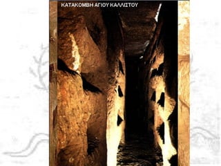 Η εποχή των διωγμών ήταν μια πολύ δύσκολη περίοδος στην ιστορία του χριστιανισμού. Οι διωκόμενοι χριστιανοί,ιδιαίτερα από την εποχή του Τραΐανού,αναγκάστηκαν να καταφεύγουν σε κατακόμβες για να συναντώνται, να ακούν το κήρυγμα και να μετέχουν στη Θεία Ευχαριστία.