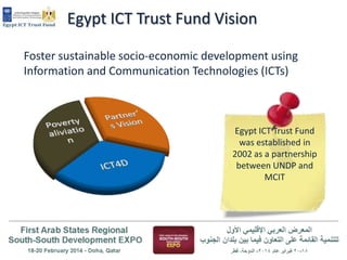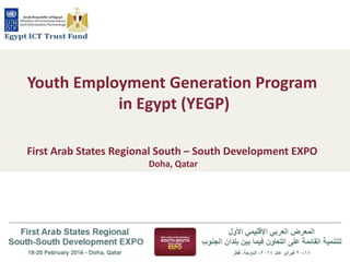 The Youth Employment Generation Program (YEGP) in Egypt aims to enhance socio-economic development through ICT, focusing on youth employment, social entrepreneurship, and vocational training. Established in 2002, the Egypt ICT Trust Fund collaborates with various partners to increase the competitiveness of micro and small enterprises while promoting training and capacity building for youth. Key strategies include leveraging ICT for business development, fostering entrepreneurship among young people, and offering technical training to improve employment opportunities.