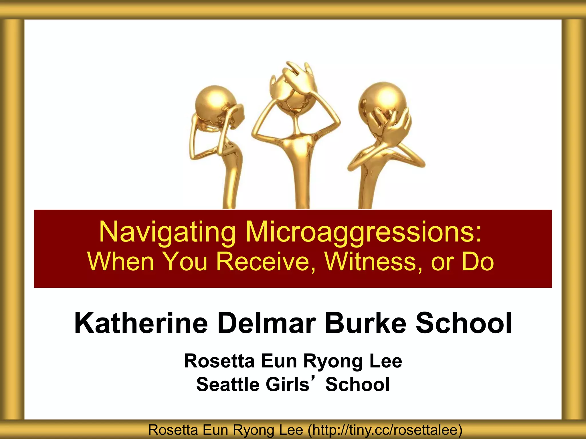 The document provides an overview of microaggressions, their impact, and strategies for self-advocacy and intervention. It emphasizes the importance of effective communication when receiving or witnessing microaggressions, promoting understanding, and building relationships. Key techniques include using 'I' statements, assuming positive intent, and actively listening while addressing harmful behaviors.