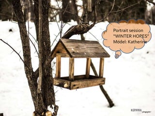 The document provides details about a photo album session titled 'Winter Hopes' featuring model Katherine, directed by photographer M. Grynykha. It includes contact information, social media links, and a YouTube channel for the photographer. The document serves as a promotional piece for the photography session.