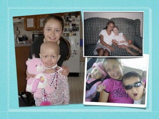 This document discusses how families can support other families with children in the hospital through volunteering together. It provides statistics showing that families who volunteer together benefit from stronger relationships and learning important values like compassion. Volunteering as a family unit at places like Ronald McDonald House can help families with sick children feel loved and supported through services, meals, and activities. The document proposes recreating Maggie's Ministry at a church to match families willing to help with families experiencing medical hardships.