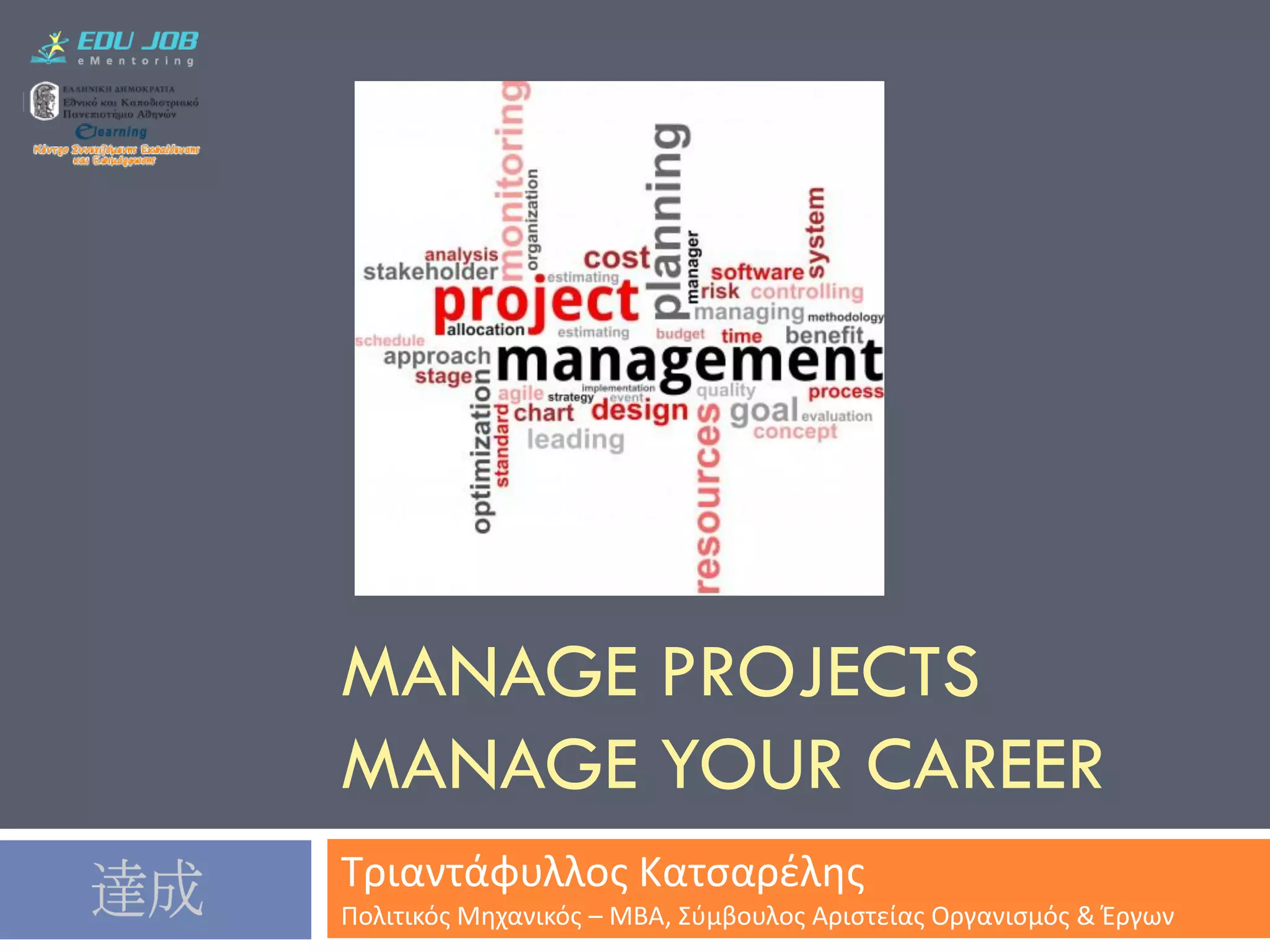 The document outlines the professional background of Triantafyllos Katsarelis, a civil engineer and project management consultant, detailing his education, work experience, and certifications. It also discusses project management methodologies, organizational structures, and the role of project teams, as well as initiatives by the IPMA and its Greek member association to promote project management education and standards. Additionally, it highlights the importance of sustainability in project management practices.