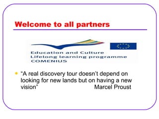 This document summarizes the minutes from a meeting of the Let Stones Speak project partners. It discusses activities carried out so far by partner schools, including setting up Comenius groups, assessments of pupils and teachers, and research on local stone sites. Key questions for discussion are outlined, such as communication methods and assessment. Tasks for the project Wikispace are assigned. Earthcaching and guidelines for teachers are described. To-do items before April 2014 include using geological maps, rock identification, and field trips. Homework is assigned to Poland to choose a local rock and mineral.