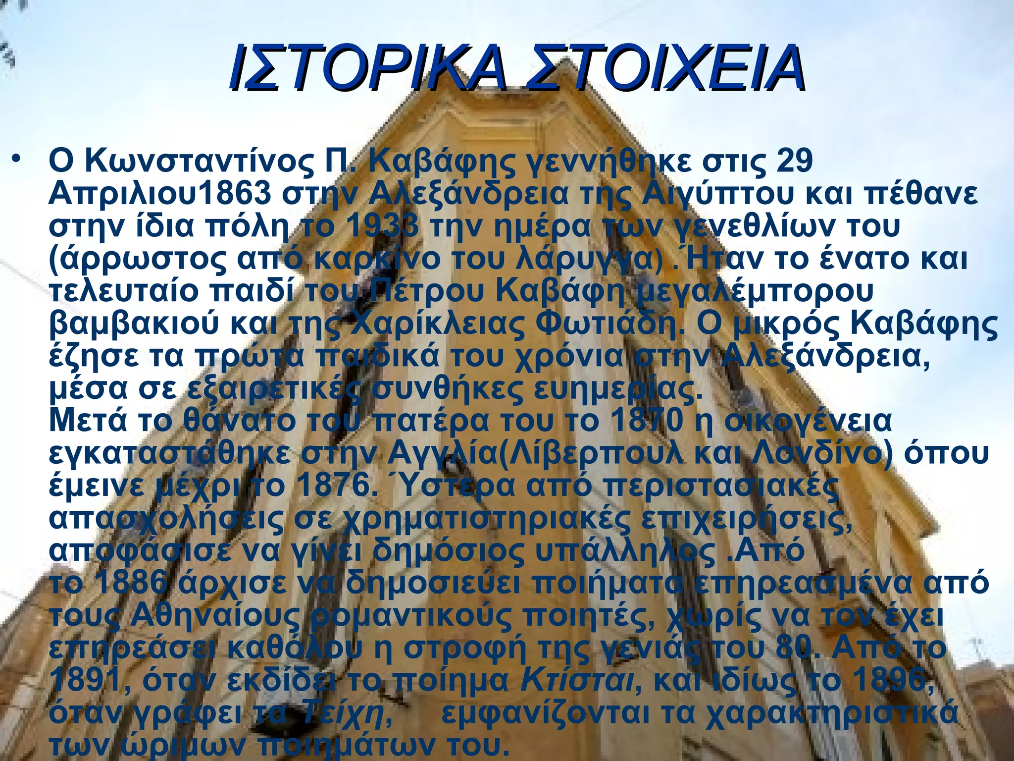 • ΟΚωνσταντίνος Π. Καβάφης γεννήθηκε στις 29