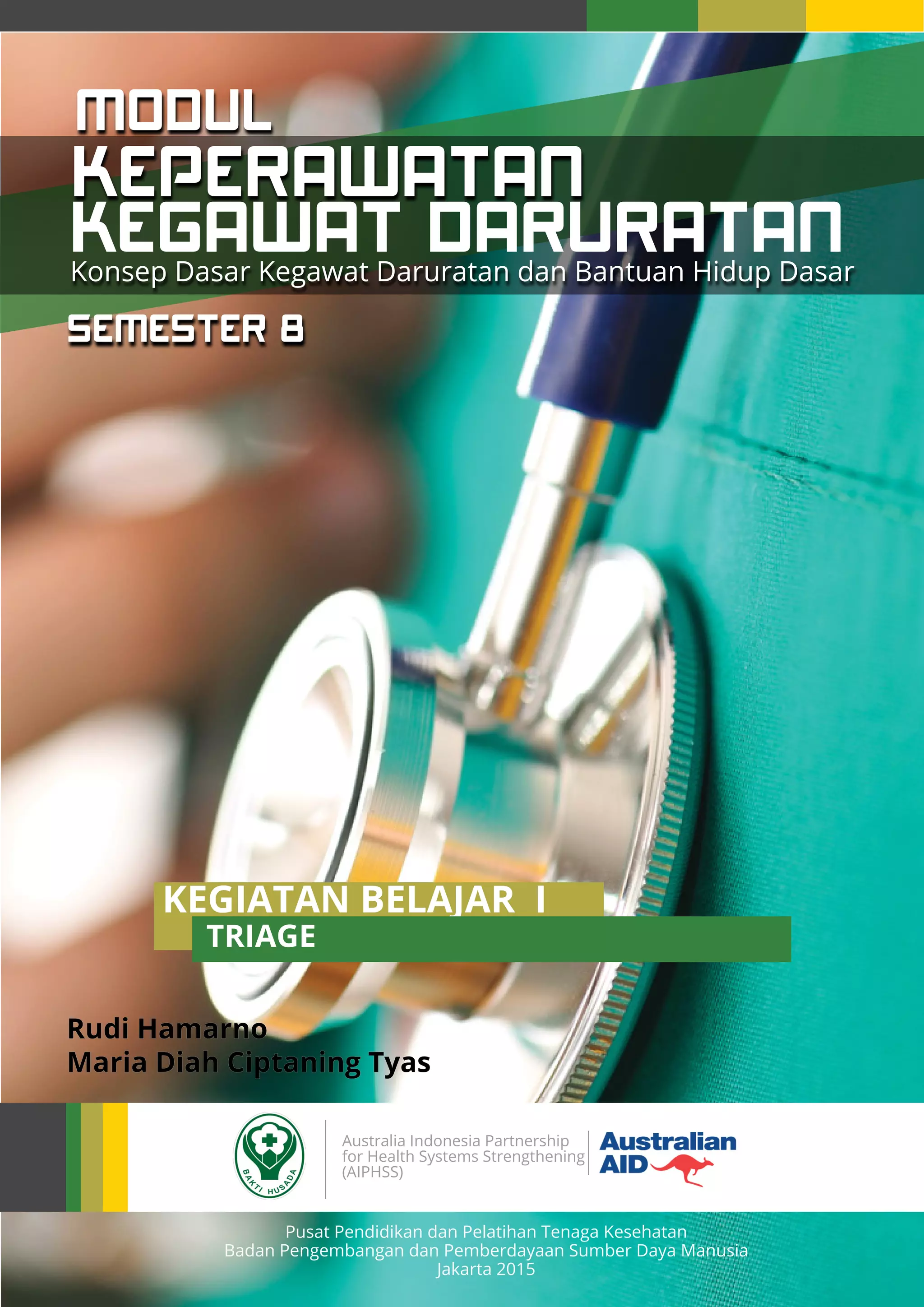 Dokumen ini membahas tentang triage dalam kegawatdaruratan, termasuk definisi, prinsip, dan klasifikasinya untuk menyelamatkan korban berdasarkan tingkat kegawatan. Triage memiliki tiga prioritas: emergensi, gawat, dan tidak gawat, dengan perhatian pada tindakan yang cepat dan tepat. Selain itu, proses triage menggunakan sistem SOAPIE dan dokumentasi yang sistematis untuk komunikasi dan kelegalan dalam perawatan kesehatan.