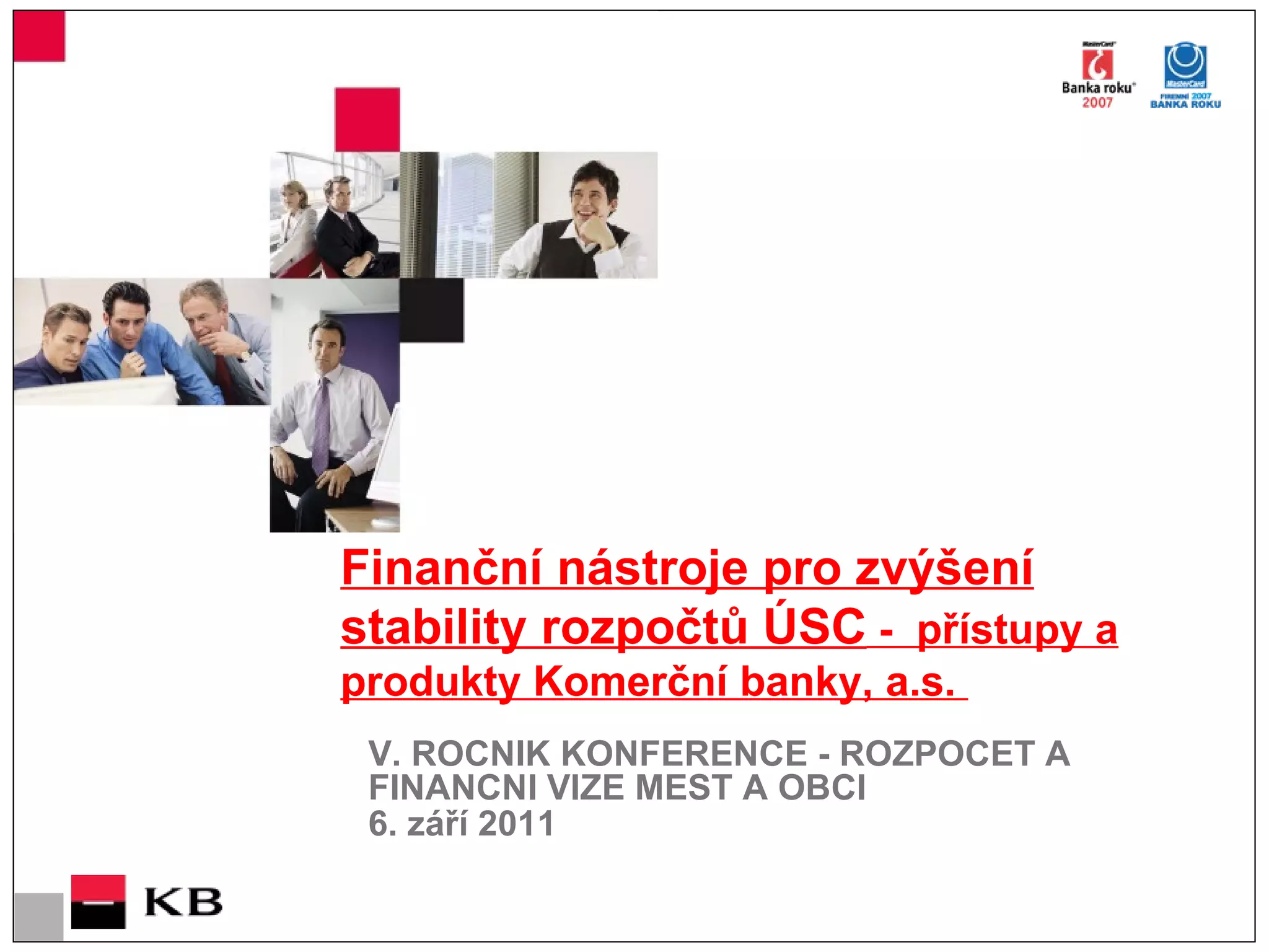 Finanční nástroje prozvýšení stability rozpočtů ÚSC - přístupy a produkty Komerční banky, a.s. V. ROCNIK KONFERENCE - ROZPOCET A FINANCNI VIZE MEST A OBCI 6. září 2011