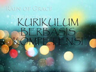 Kurikulum Berbasis Kompetensi (KBK) adalah konsep pendidikan yang menekankan pengembangan kompetensi siswa melalui pengalaman belajar yang beragam. KBK memiliki karakteristik utama termasuk tujuan untuk mengembangkan pengetahuan dan keterampilan siswa, serta pentingnya peran guru sebagai perencana, pengelola, fasilitator, dan evaluator. Kesimpulannya, KBK bertujuan untuk memastikan siswa menguasai kompetensi serta memiliki sikap dan nilai yang baik dalam kehidupannya.