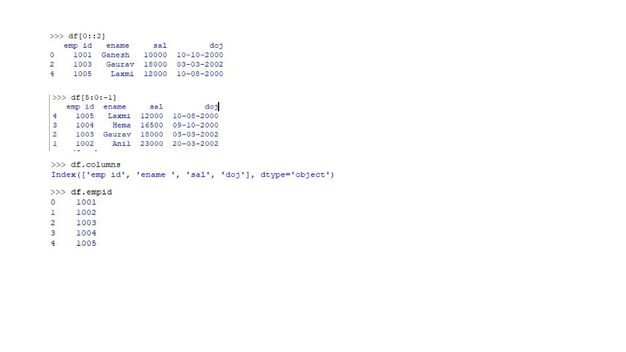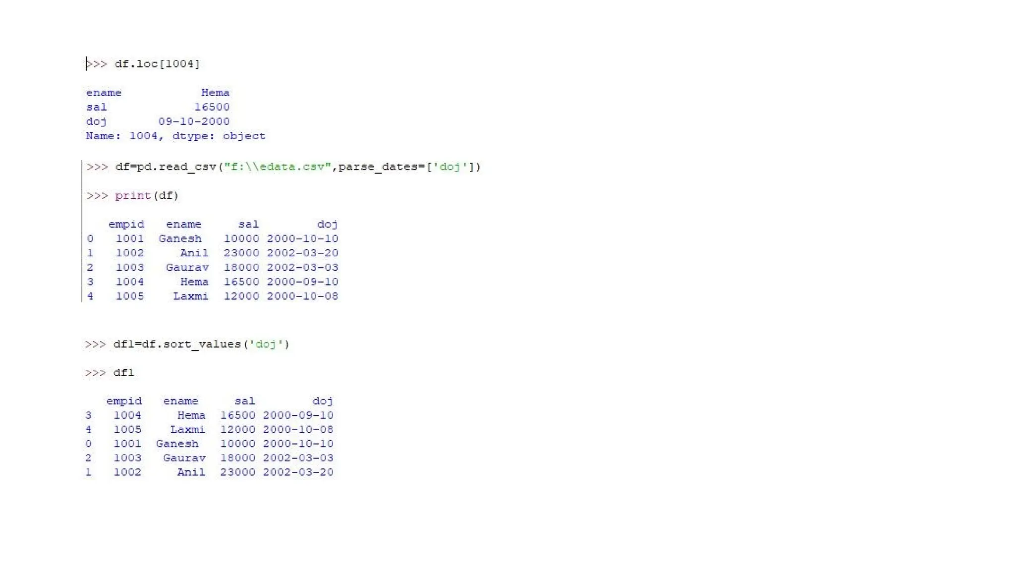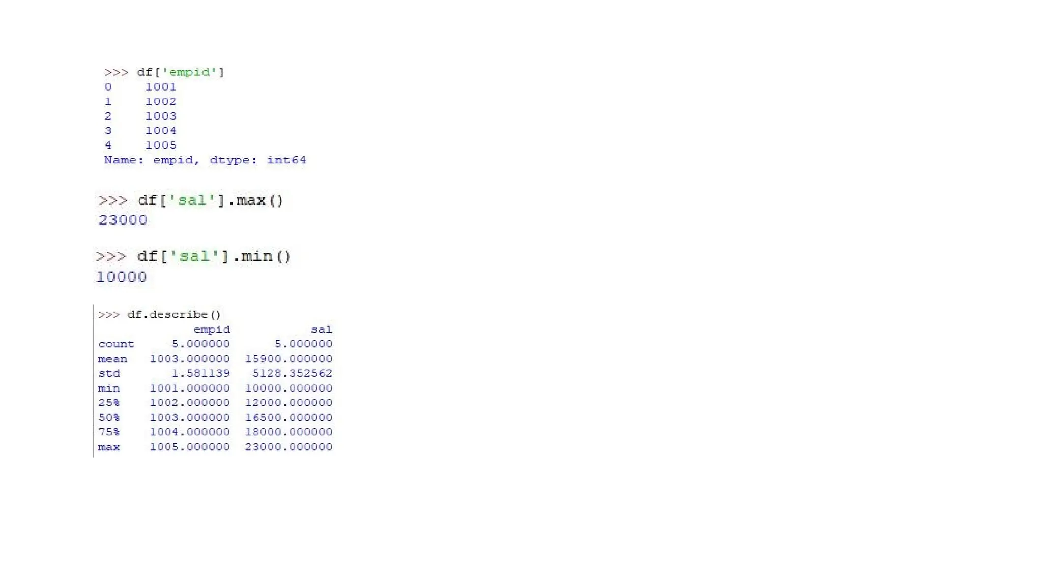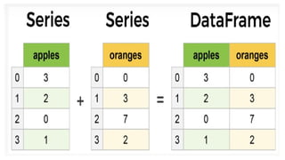 • The key data structures of pandas are 1) Series 2)Data Frames